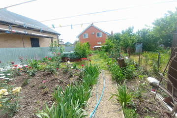 . Огород: плодоносящие деревья и кустарники, много цветов, Розарий.