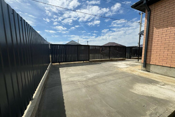 - Двор забетонирован, огорожен капитальным забором с откатными воротами.