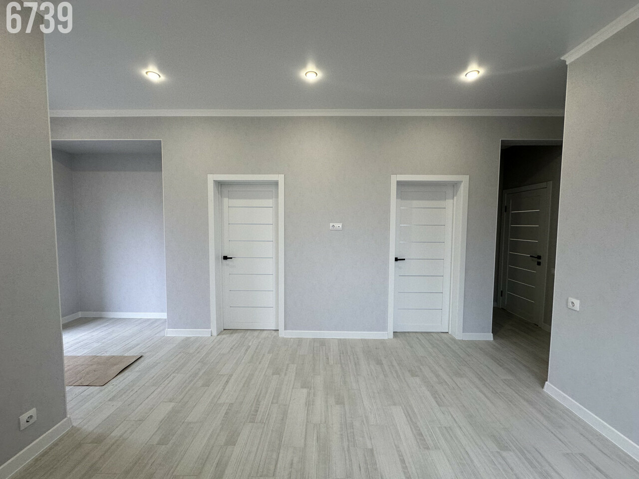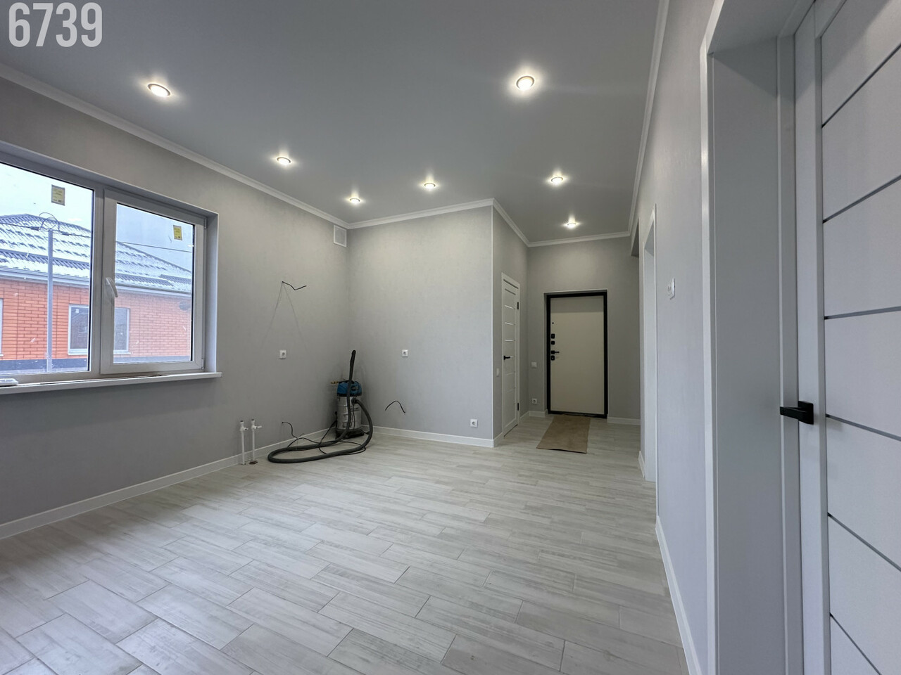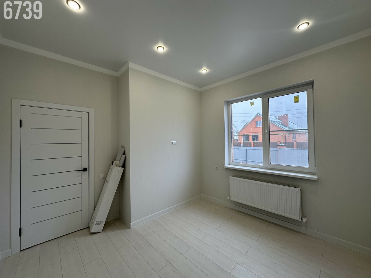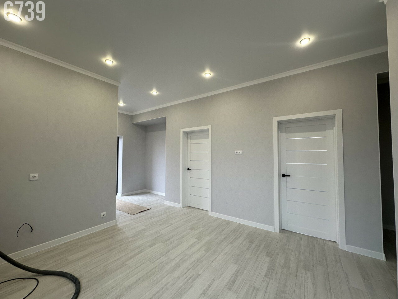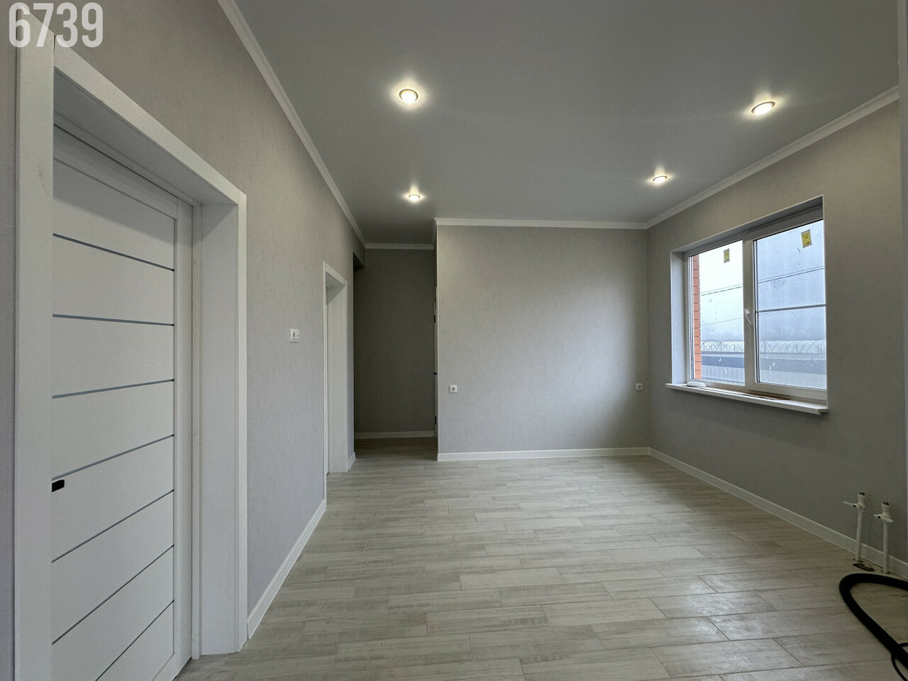 - В доме просторная кухня-гостиная, прихожая с нишей под шкаф-купе, три изолированные спальни, санузел полностью с сантехникой.