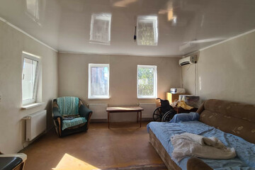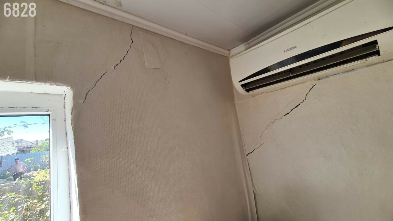 дом кубанец ( есть трещины и внутри и снаружи), есть кухня и санузел.летняя кухня,навес.