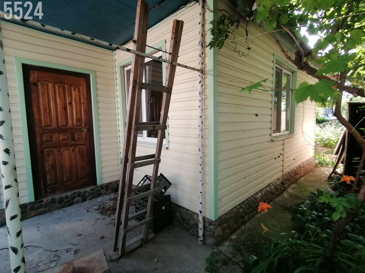 Участок ровный, огороженный, много плодовых деревьев.