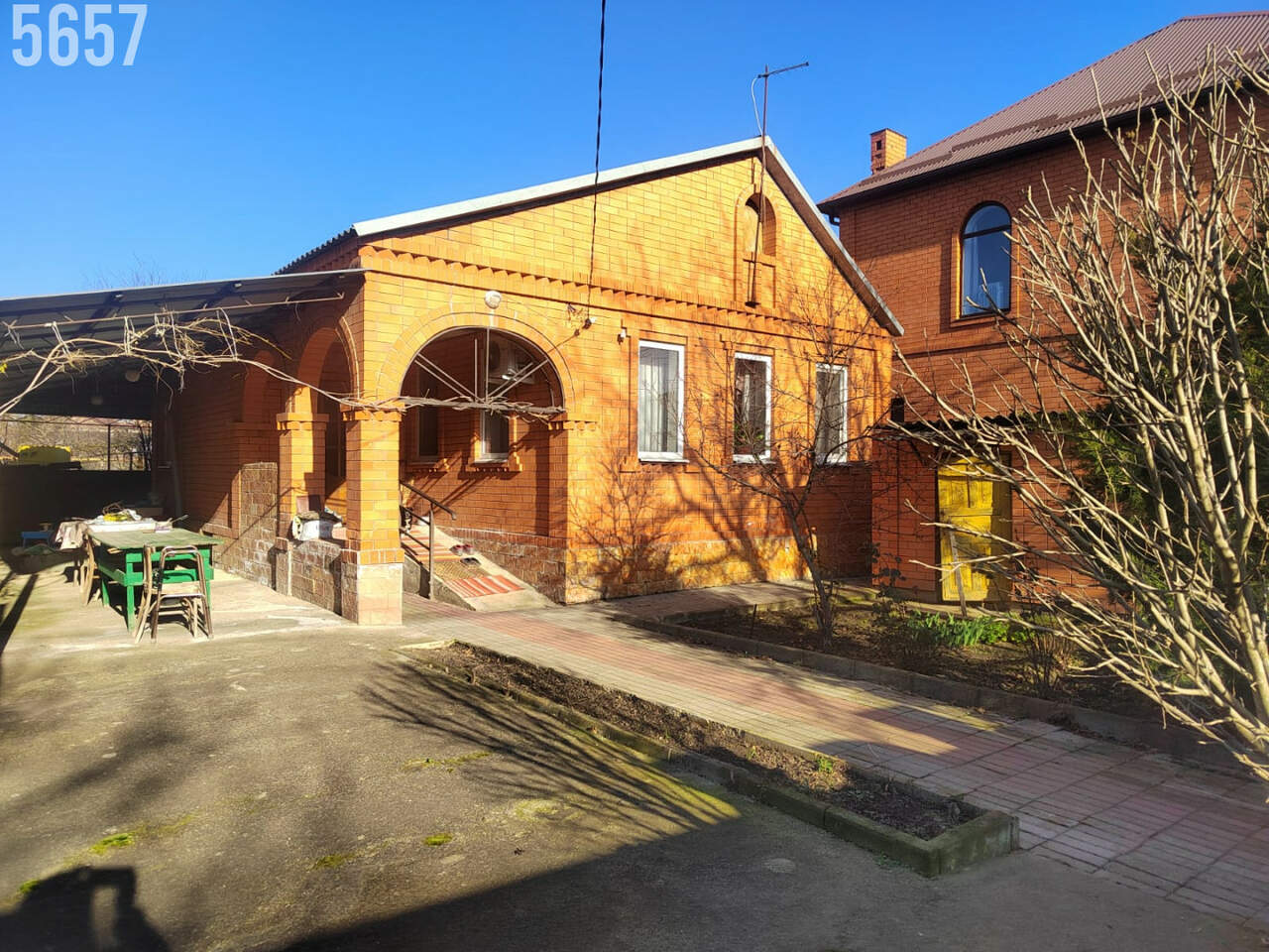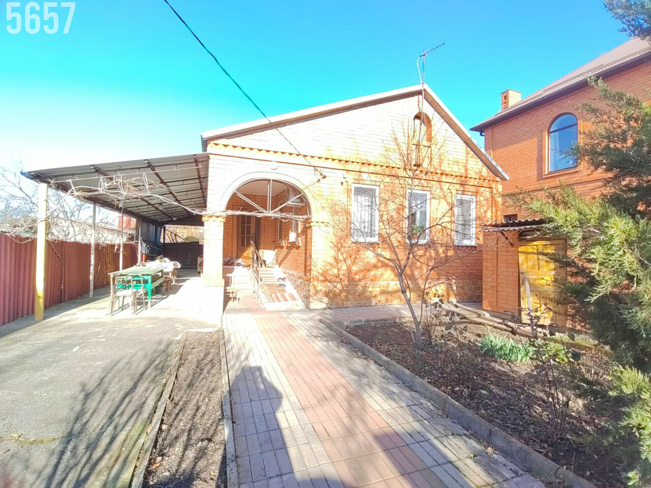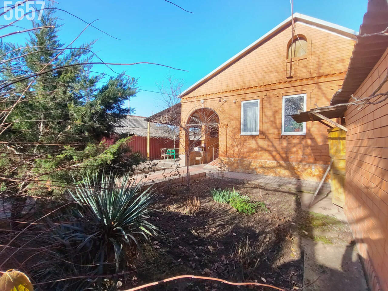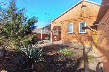 - Придомовая территория дома шикарная, участок ровной прямой формы, высажено достаточное количество фруктовых деревьев, разбиты клумбы для цветов, двор вымощен плиткой, установлен навес.