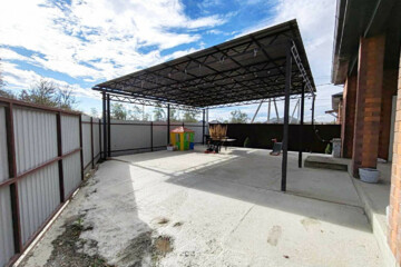 - Участок данного дома огорожен по периметру, двор забетонирован, установлен добротный навес, высажены деревья, разбиты клумбы.