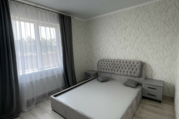 - В доме две спальни, просторная кухня-гостиная с панорамными окнами и выходом на террасу, санузел совмещен(сантехника установлена).