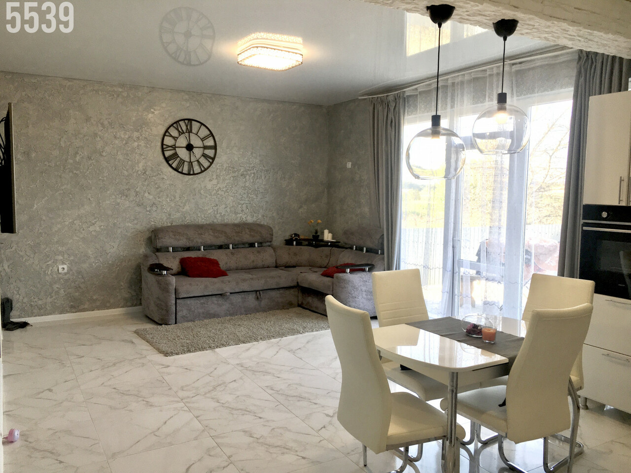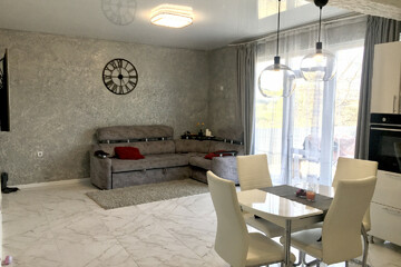 Удобная планировка: кухня-гостиная с выходом на террасу, где можно утром попить чашечку кофе и послушать пение птиц, две изолированные спальни, гардеробная, с/у.