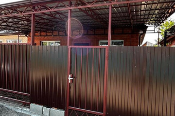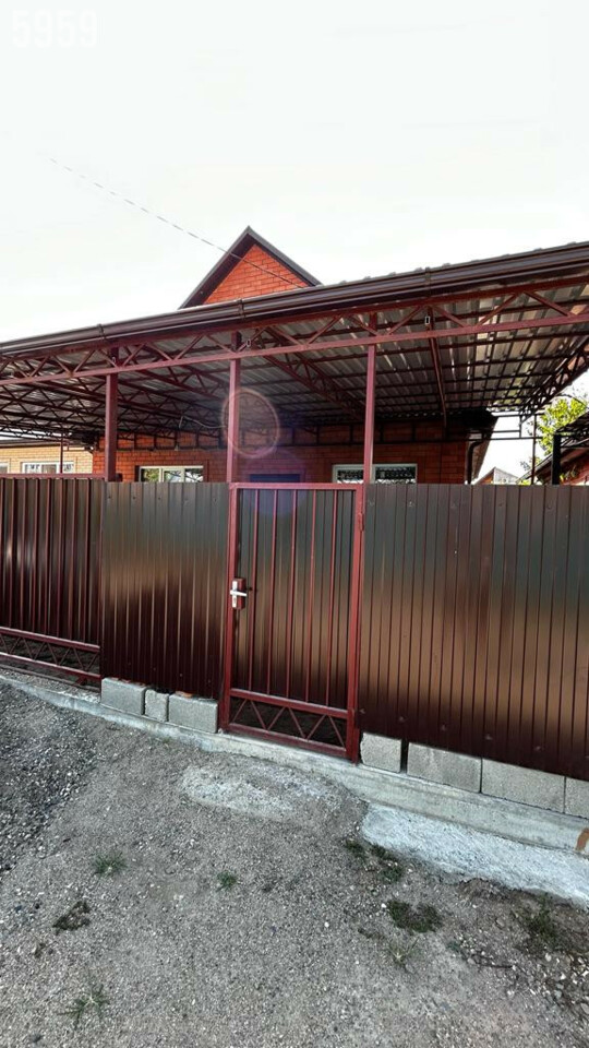 -Установлен навес, забор из металлопрофиля, ворота откатные.