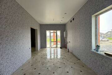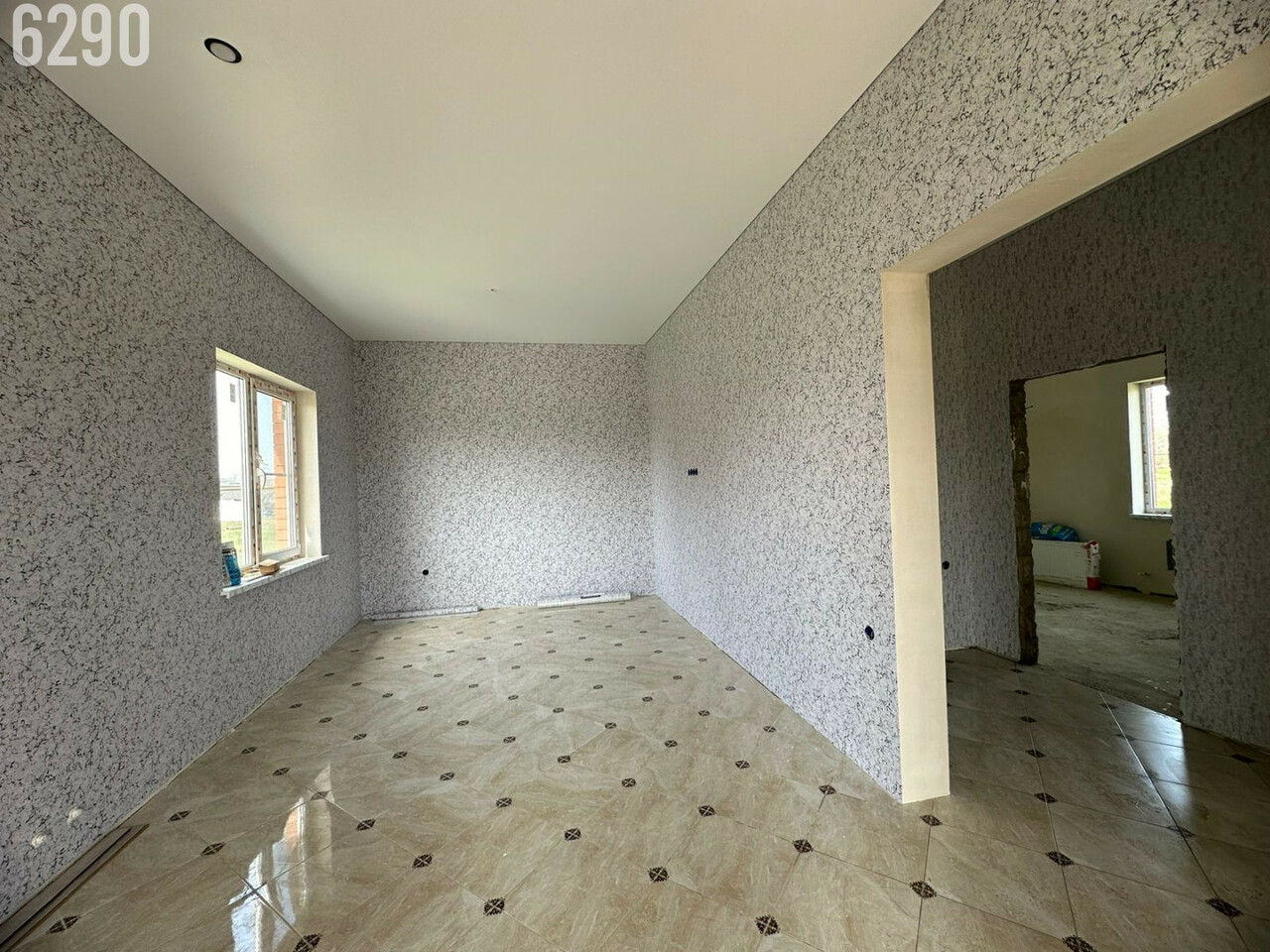 - В доме просторная кухня- гостиная с выходом на террасу, две изолированные спальни, санузел и коридор.