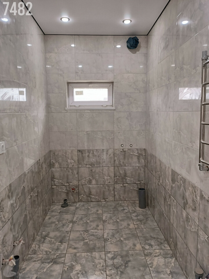 — Ремонт: натяжные потолки, двери, плитка, ламинат, стены готовы под обои. Система " тёплый пол " + радиаторы. Осталось установить сантехнику и можно заселяться!