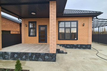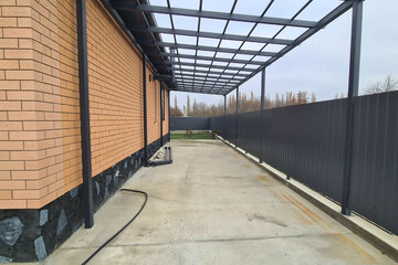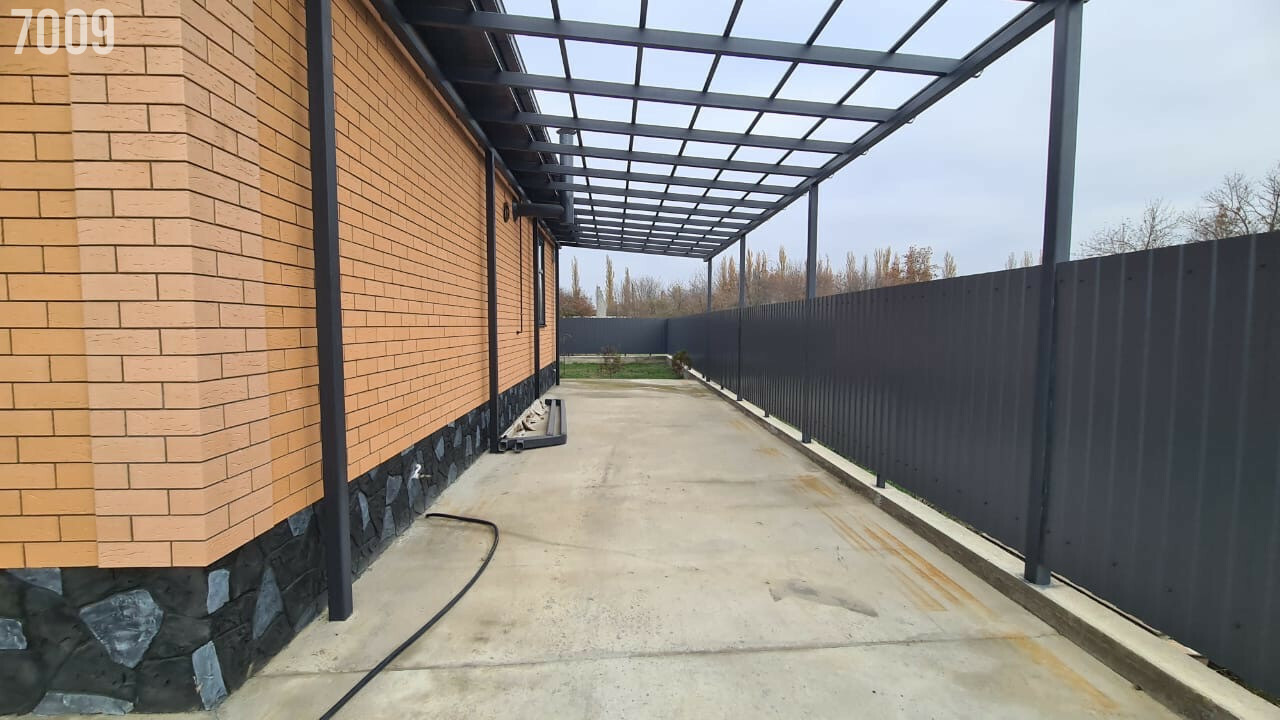 - Двор забетонирован и огорожен по периметру капитальным забором, имеется заезд для машины, капитальный навес.