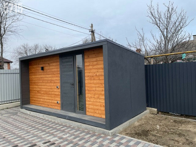 - Во дворе установлен современный хозяйственный модуль с оборудованной зоной хранения. Изготовлен по спец.заказу из эко материалов (лиственница). Модуль идеально вписался в общую концепцию двора.