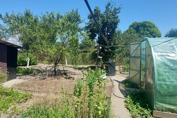 Сад/Огород: Ухоженный огород, плодовые деревья, виноград, теплица (готовое место для садоводства и отдыха).