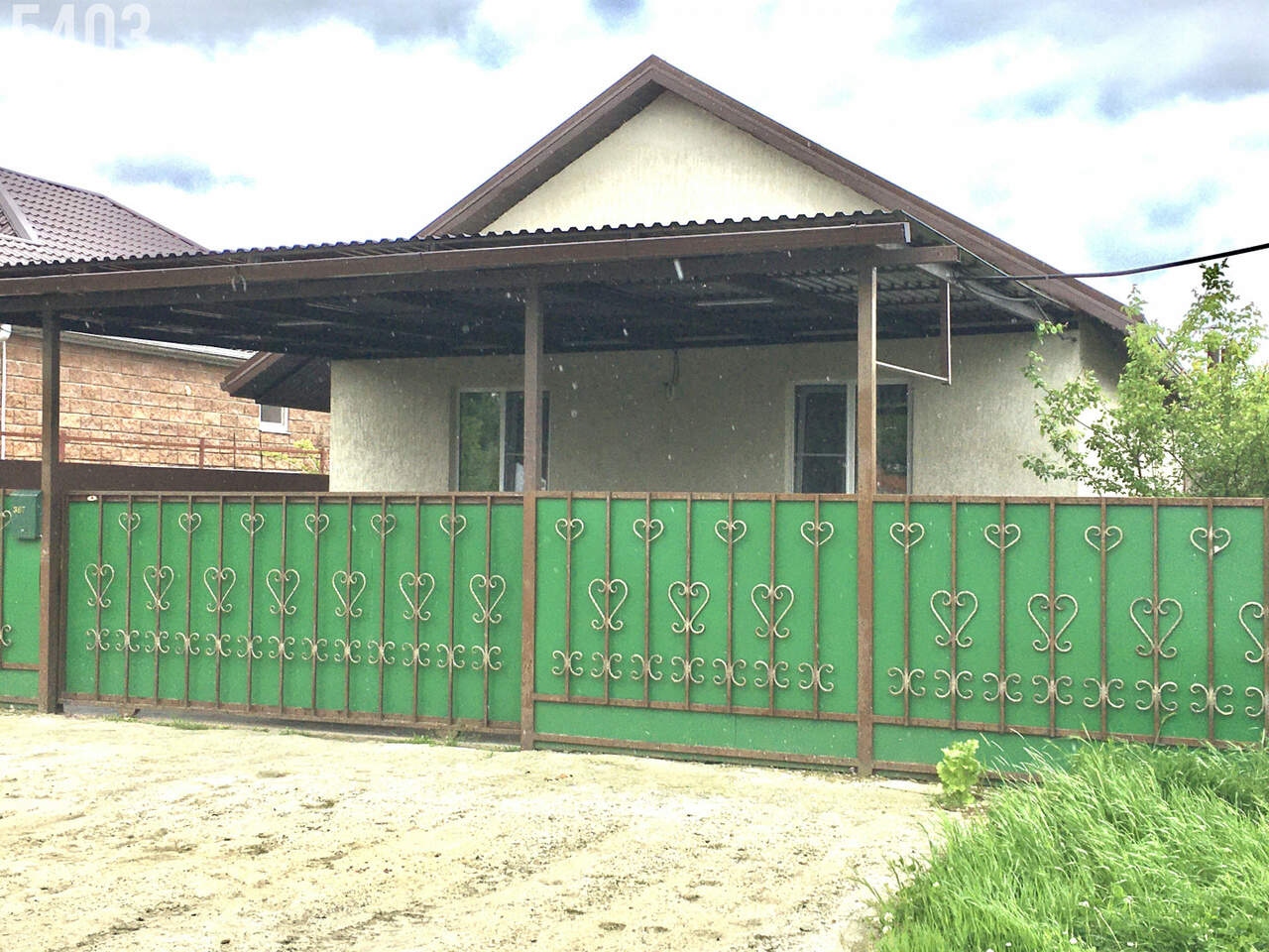 -Большой навес, двор вымощен плиткой.