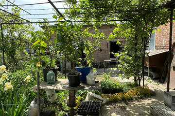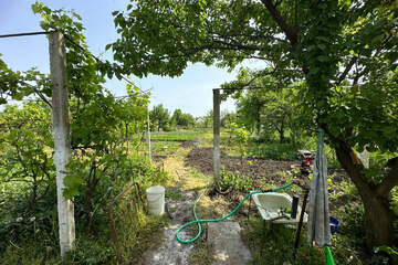 - Плодоносящий сад (черешня, вишня, яблони, голубика, малинник), хоз постройки