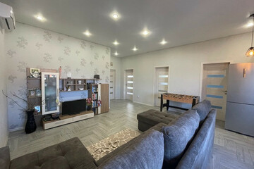 - В доме три изолированные спальни, просторный санузел, кухня-гостиная с выходом на участок.