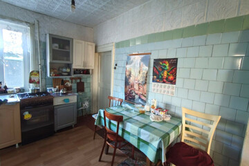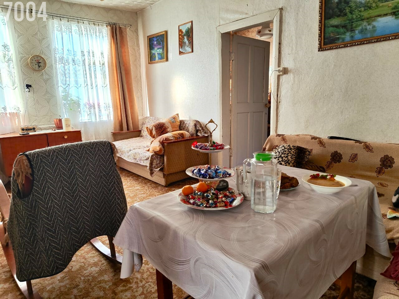 - Планировка: прихожая, гостиная, три комнаты, совмещенный санузел, кладовая.