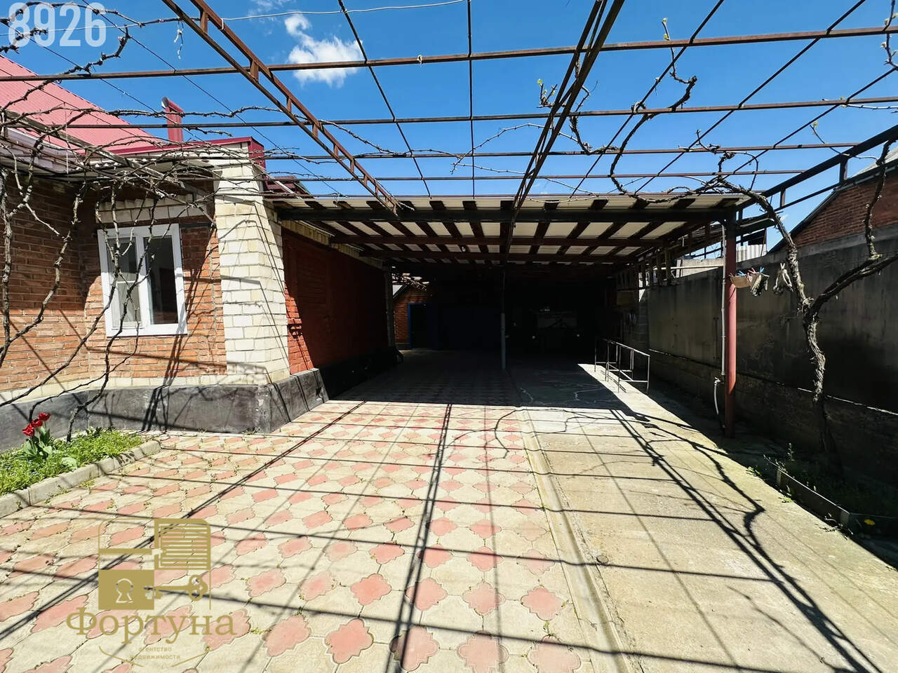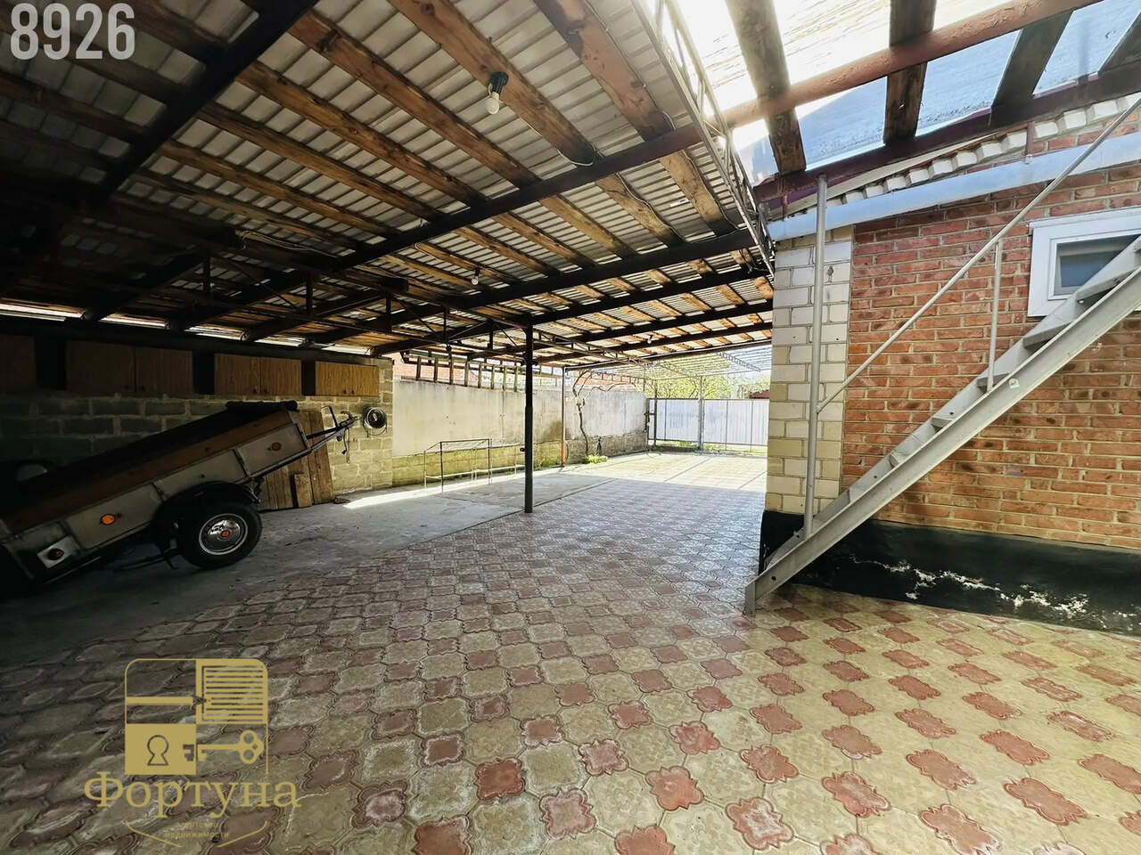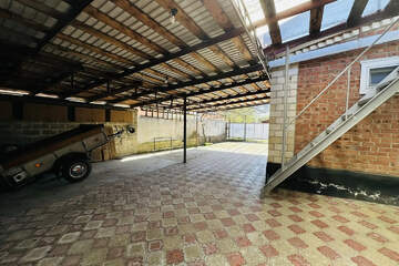 Двор выложен плиткой и накрыт навесом — чисто, удобно и практично в любую погоду.