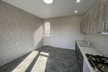 - В доме сделан качественный ремонт: плитка, ламинат, обои, натяжные потолки, межкомнатные двери, установлена сантехника. Люстры и точечные светильники в каждой комнате.