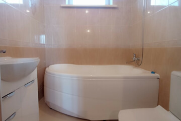 · СДЕЛАН КАЧЕСТВЕННЫЙ РЕМОНТ "ПОД КЛЮЧ": заходи и живи! На полу плитка (керамогранит), установлен "теплый пол" с регулировкой , в комнатах ламинат, качественные межкомнатные двери на магнитных замках, натяжные потолки во всем доме.