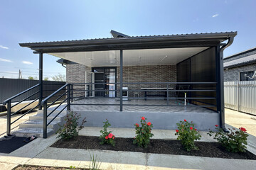 Современная планировка. Три отдельные спальни. Просторная светлая кухня с прямым выходом на крытую террасу – идеально для семейных обедов и отдыха. Вход в дом оформлен второй террасой.