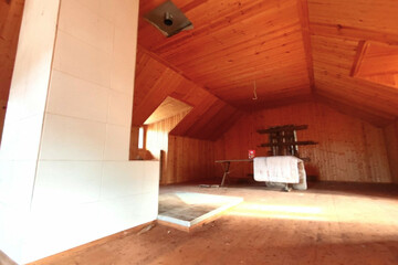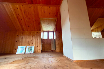 - Планировка: 1й этаж - прихожая, три комнаты, ванная, 2й этаж - одно помещение