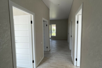 Три просторные спальни, кухня-гостиная с выходом на крытую террасу, котельная-кладовая, санузел (сантехника установлена).