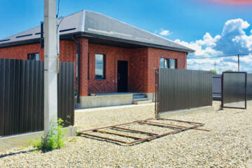 - Участок 5 соток полностью огорожен, забор с откатными воротами для заезда автомобиля.