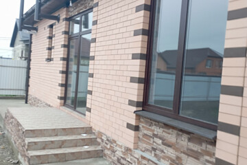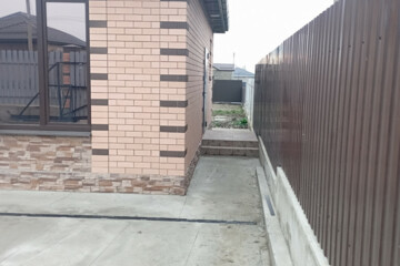 · Дом построен из самого тёплого и прочного материала: бетонный блок, между облицовкой и блоком утеплён керамзитом 20 см, облицован керамическим итальянским кирпичом. Фундамент (ленточный) на бетонной армированной плите (усадку уже дал).
