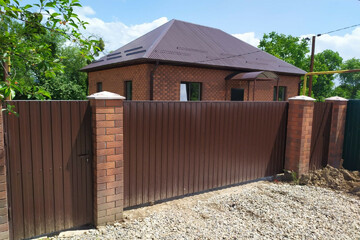 - По периметру забор из металлопрофиля, откатные ворота.