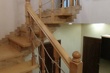 - ПЛАНИРОВКА ДОМА: на 1-м этаже - спальня, кухня, прихожая, сан. узел(в плитку), небольшая кладовка (под лестницей) и котельная - кладовая 8 кв. На втором этаже: три изолированные спальни и сан. узел(в плитку). Комнаты очень светлые, просторные, уютные. С первого этажа на второй ведет лестница сделанная из массива.