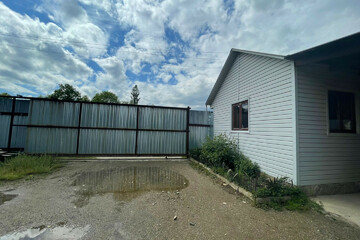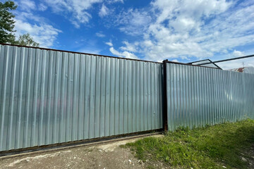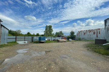 - Территория огорожена по периметру высоким забором из профильного листа высотой около 3 метров, 2 откатных ворот под грузовой транспорт.