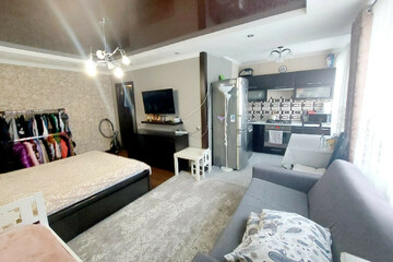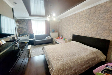 - В квартире просторная спальня, кухня, совмещённый санузел.