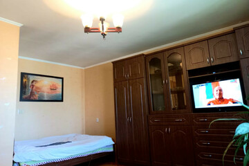 - В квартире просторная спальня, совмещённый санузел, кухня, застекленный балкон, имеется накопительный бак.