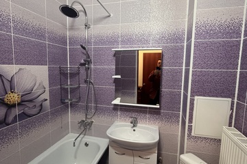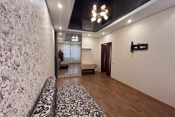 Квартира с ремонтом, делали для себя, в санузле свежий ремонт, новая сантехника, потолки двухуровневые с подсветкой.