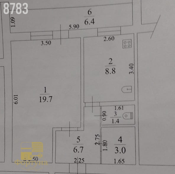 Комната 20 кв. м., кухня просторная 8.8 кв. м. санузел раздельный.