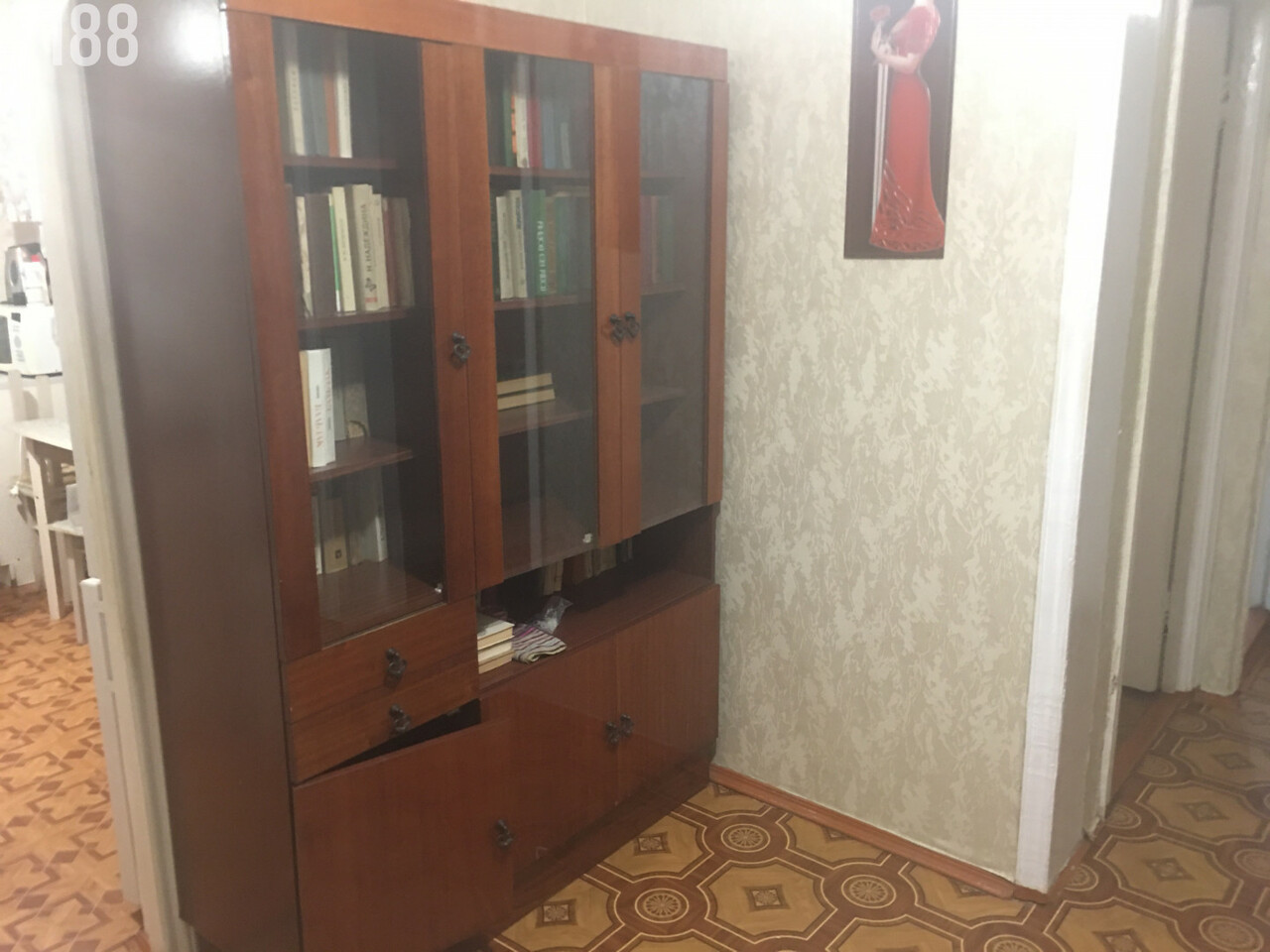 Квартира светлая, на полу линолеум, частично остается мебель.