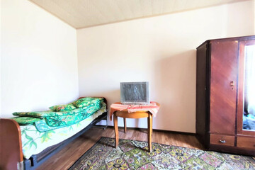 - В квартире отдельный вход, прихожая, коридор, кухня, совмещенный санузел, гардеробная, две комнаты.