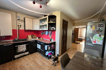 Хорошая планировка- просторная кухня, все комнаты изолированы.