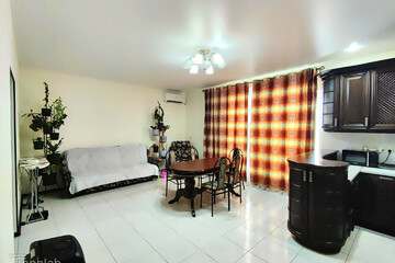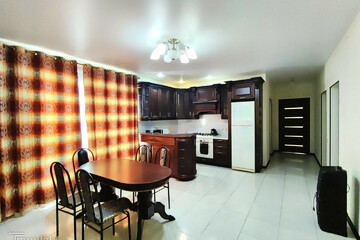 - Остаётся оборудованный кухонный гарнитур и гардеробы.