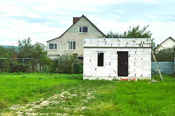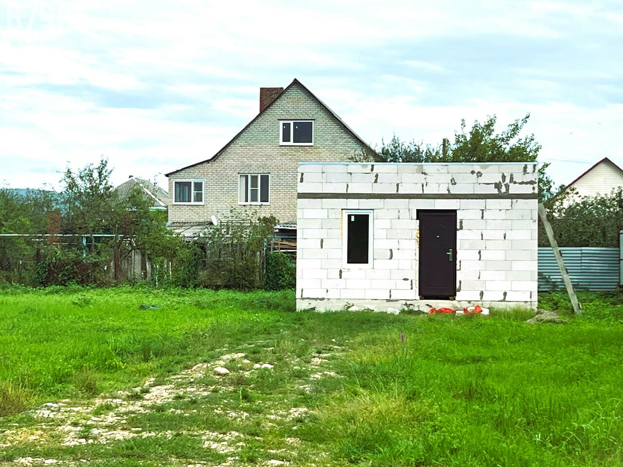 - На участке имеется строение 36 кв. м. (под жилой дом, баню. гостевой домик).