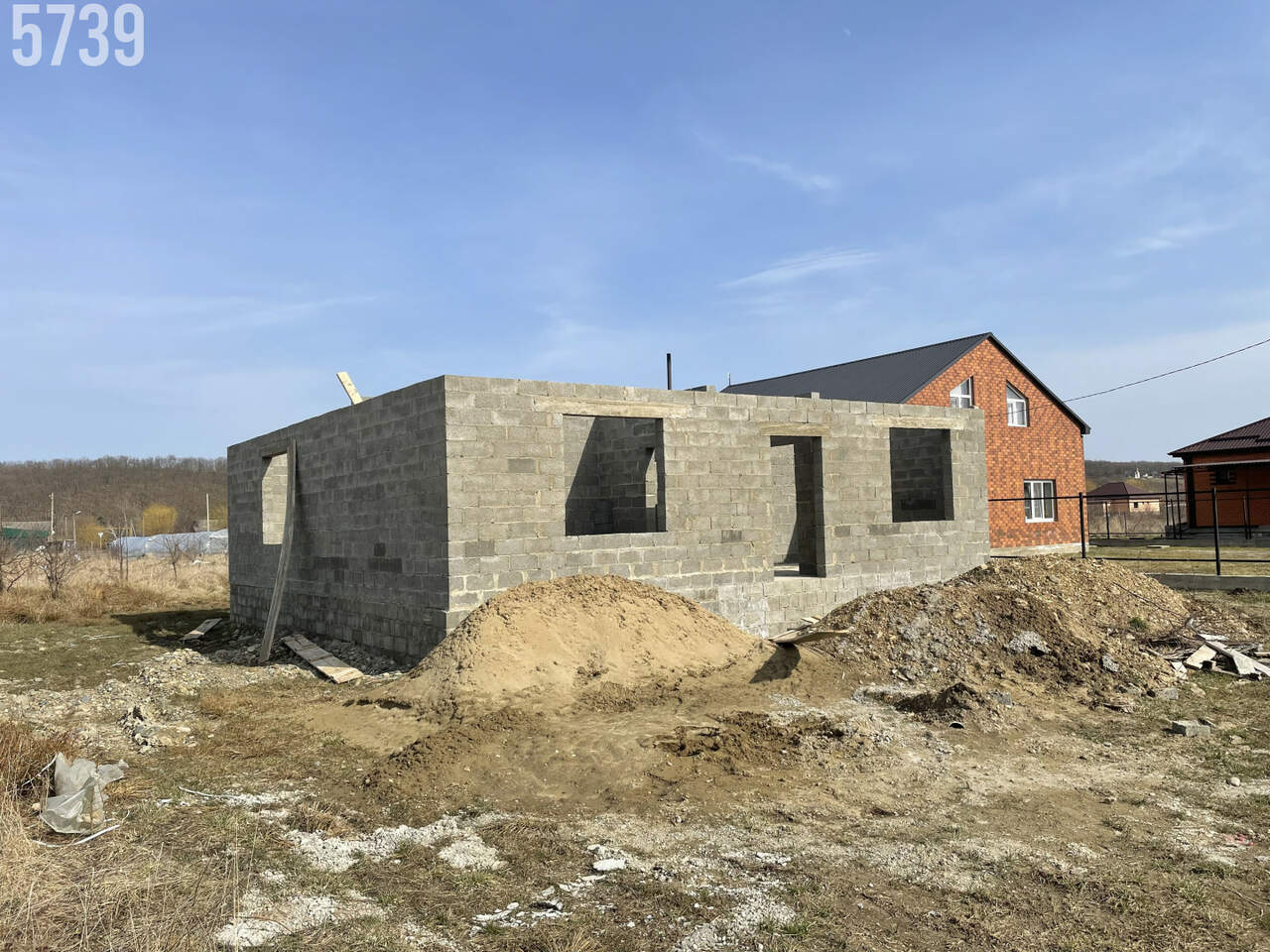 - На участке имеется блочная коробка 10/11, стены выведены до крыши.