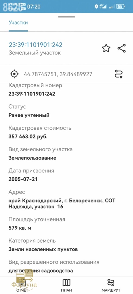Площадь участка :