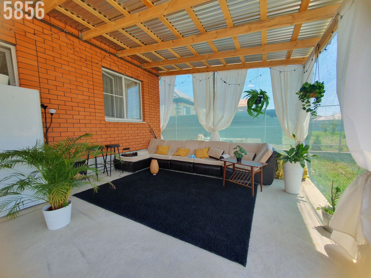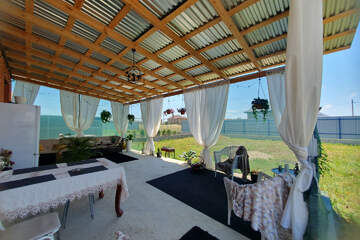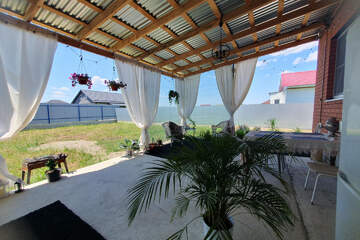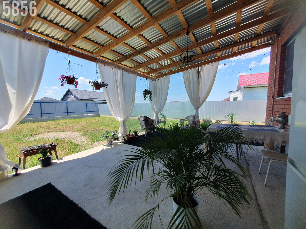 - На участке шикарная, оборудованная терраса под навесом, двор забетонирован.
