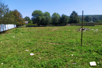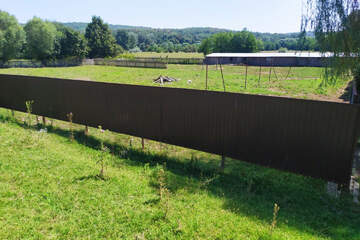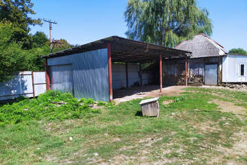 - На одном из участков имеется старенький, жилой домик, большой навес, огорожен забором.